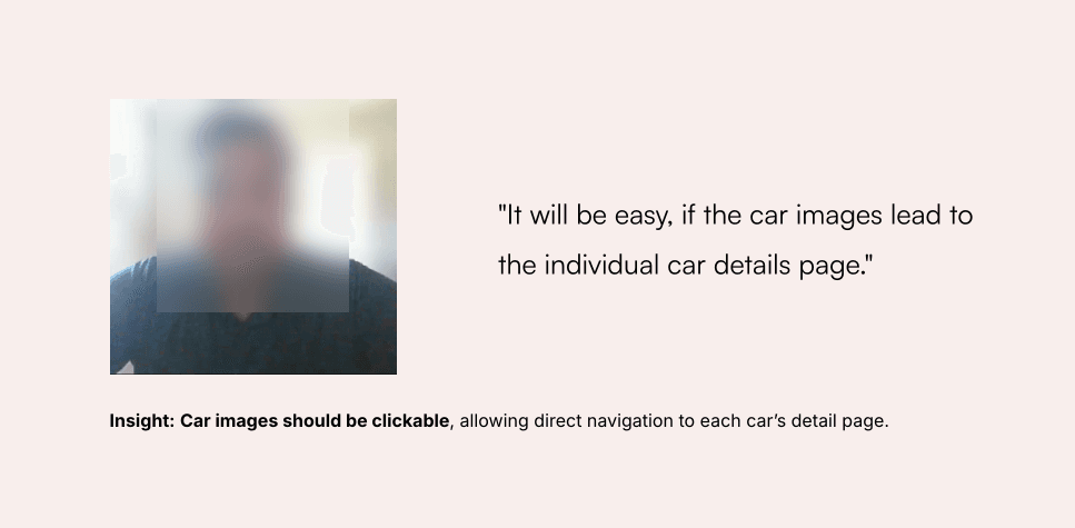 I conducted semi-structured virtual interviews with 5 participants who were either actively looking for a car or had recently gone through the car-buying process. The interviews were designed to explore their motivations, pain points, and decision-making behaviors.