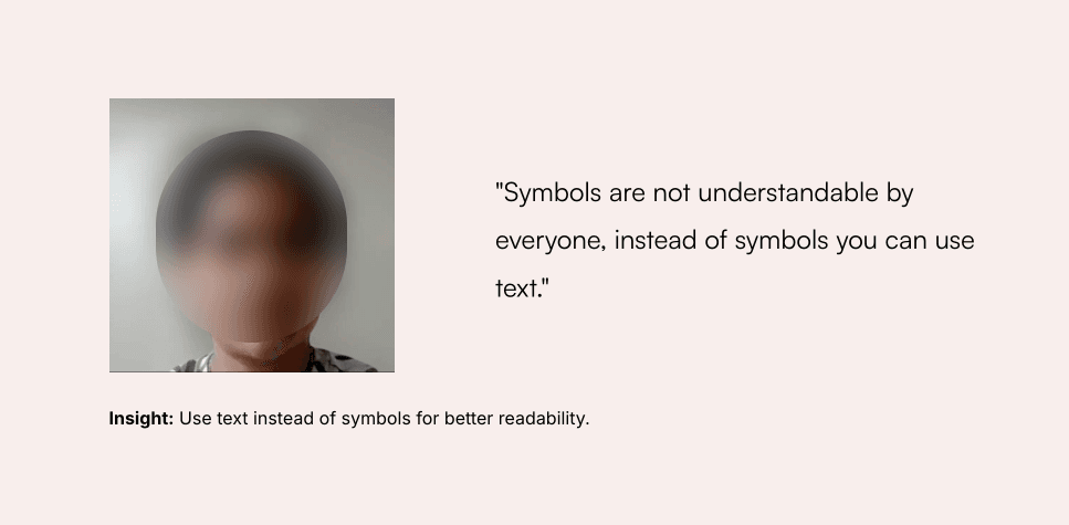 And the ‘<’ symbol was confusing, suggesting that text-based labels might be more intuitive